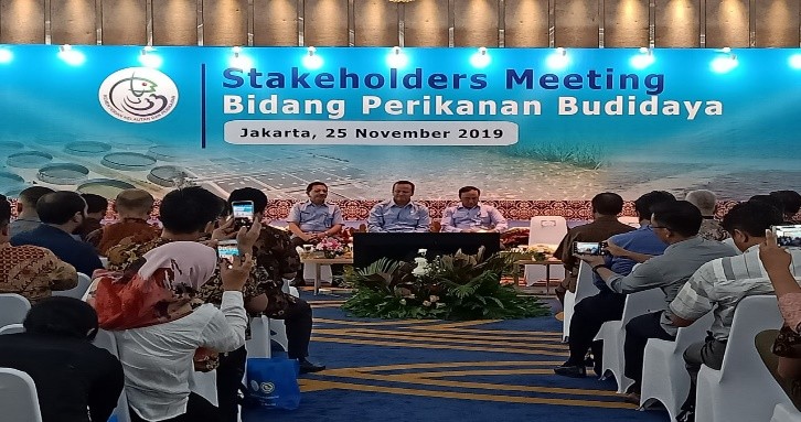 Stakeholders Meeting Bidang Perikanan Budidaya diselenggarakan di Ballrom Gedung Mina Bahari III, Kementerian Kelautan dan Perikanan. Acara tersebut dibuka oleh Menteri Kelautan dan Perikanan – Edhy Prabowo dan dihadiri oleh Pejabat Eselon 1 lingkup Kementerian Kelautan dan Perikanan, para undangan lingkup KKP dan tentunya stakeholders bidang perikanan budidaya. Acara tersebut memiliki tujuan untuk membangun komunikasi dengan para stakeholder untuk meningkatkan pelayanan usaha kepada masyarakat sehingga dapat menumbuhkan investasi Indonesia. Tujuan tersebut merupakan salah satu amanat dari Presiden RI – Joko Widodo untuk dilaksanakan. Menurut Menteri KKP – Edhy Prabowo dalam membangun industri perikanan budidaya akan membangun komunikasi tidak hanya pelaku usaha, namun juga dengan semua pemerintah daerah di Indonesia, baik itu kota, kabupaten, propinsi. Selama ada gairah untuk membangun sentra perikanan budidaya maka antara KKP dan stakeholder berjalan beriringan. Masih banyak masalah tumpang tindih peraturan antara pemerintah pusat dan pemerintah daerah. Ke depan perlahan-lahan akan diperbaiki. Ini butuh waktu untuk memperbaiki regulasi tersebut. Tidak bisa dilakukan hanya dengan kekuatan eksekusi saja tapi Saya diperlukan pandangan ilmiah dari para ahli dan pandangan akademis dari para tokoh perikanan. Hal ini bertujuan agar aturan yang dihasilkan clear and clean, karena peraturan dibuat untuk kepentingan bersama dan bukan atas keinginan pribadi dari pihak kementerian dan yang paling besar berdampak dan merasakan adalah para pelaku usaha. Untuk itu diperlukan masukan dari pelaku industri perikanan budidaya, salah satunya dengan cara menghidupkan kembali Komisi Tuna, Komisi Udang, Komisi Ranjungan. Ini bagian kontrol dari KKP, sejauh mana kemampuan KKP mengawal dan berbuat terhadap industri perikanan.