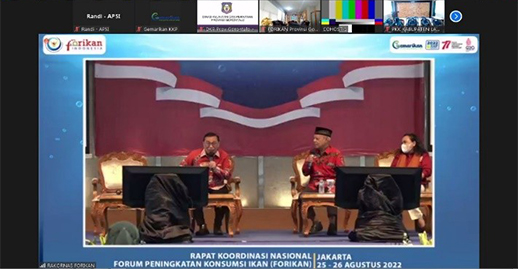 Dalam rangka penguatan, sinergitas kegiatan dan menyusun keterpaduan langkah dalam mendukung peningkatan konsumsi ikan nasional melalui Gerakan Memasyaratkan Makan Ikan ( Gemarikan )Kementerian Kelautan dan Perikanan ( KKP ) terus berkolaborasi dengan Forum Peningkatan Konsumsi Ikan ( Forikan ) dalam menggencarkan kampanye Gerakan Memasyarakatkan Makan Ikan ( Gemarikan ) di berbagai daerah. Hal tersebut dilakukan sebagai upaya menurunkan angka stunting dan peningkatan kesehatan masyarakat. Artati Widiarti – Analis Pasar Hasil Perikanan Ahli Utama pada Ditjen Penguatan Daya Saing Produk Kelautan dan Perikanan ( PDSPKP ) memaparkan penurunan angka stunting dalam kurun waktu 3 tahun terakhir. Dimulai dari 27,6 persen di tahun 2019 menjadi 26,9 persen di tahun 2020 serta 24,4 persen pada tahun 2021. Sejalan dengan hal tersebut, angka konsumsi ikan ( AKI ) nasional cenderung meningkat, dimulai dari 2019 sebesar 50,50, lalu 2020 menjadi 50,56 serta 55,37 di tahun 2021. Artinya ikan banyak mengandung gizi terutama protein dan asam lemak omega 3 yang baik untuk pertumbuhan dan kecerdasan. Sementara Direktur Pemasaran Ditjen PDSPKP – Erwin Dwiyana menyebut peningkatan konsumsi ikan juga akan berdampak pada perekonomian. Terlebih jika yang dikonsumsi adalah produk olahan UMKM perikanan. KKP juga terus mengampanyekan gerakan nasional #BanggaBuatanIndonesia seperti yang dilakukan di Kalimantan Selatan, pertengahan Juli lalu. Ketua Forikan Pusat – Djoko Maryono memastikan Forikan tengah menyusun peta permasalahan terkait peningkatan konsumsi ikan secara nasional. Menurutnya, ikan mengandung banyak gizi yang berguna bagi tubuh seperti Omega-3,6,9 untuk membantu perkembangan otak, mata, syaraf. Kemudian protein, zat pembangun, lebih mudah dicerna, mengandung asam amino terlengkap.  Tak hanya itu, ada juga vitamin A, B6, B12, D sebagai antioksidan, sehat untuk mata,  meningkatkan metabolisme protein dan lemak, serta mineral untuk membantu pembentukan sel darah merah, mencegah gondok, dan lain sebagainya. Pembukaan Rakornas Forikan ditandai dengan pemukulan gong oleh Penasehat Dharma Wanita Persatuan KKP – Ernawati Trenggono. Kegiatan ini diikuti oleh sejumlah pengurus Forikan baik pusat maupun daerah. Menteri Kelautan dan Perikanan – Sakti Wahyu Trenggono menegaskan komitmennya dalam memerangi stunting khususnya di daerah-dadaerah terpencil di Indonesia melalui penyaluran mobil Alih Teknologi dan Informasi ( ATI ) Gemarikan.