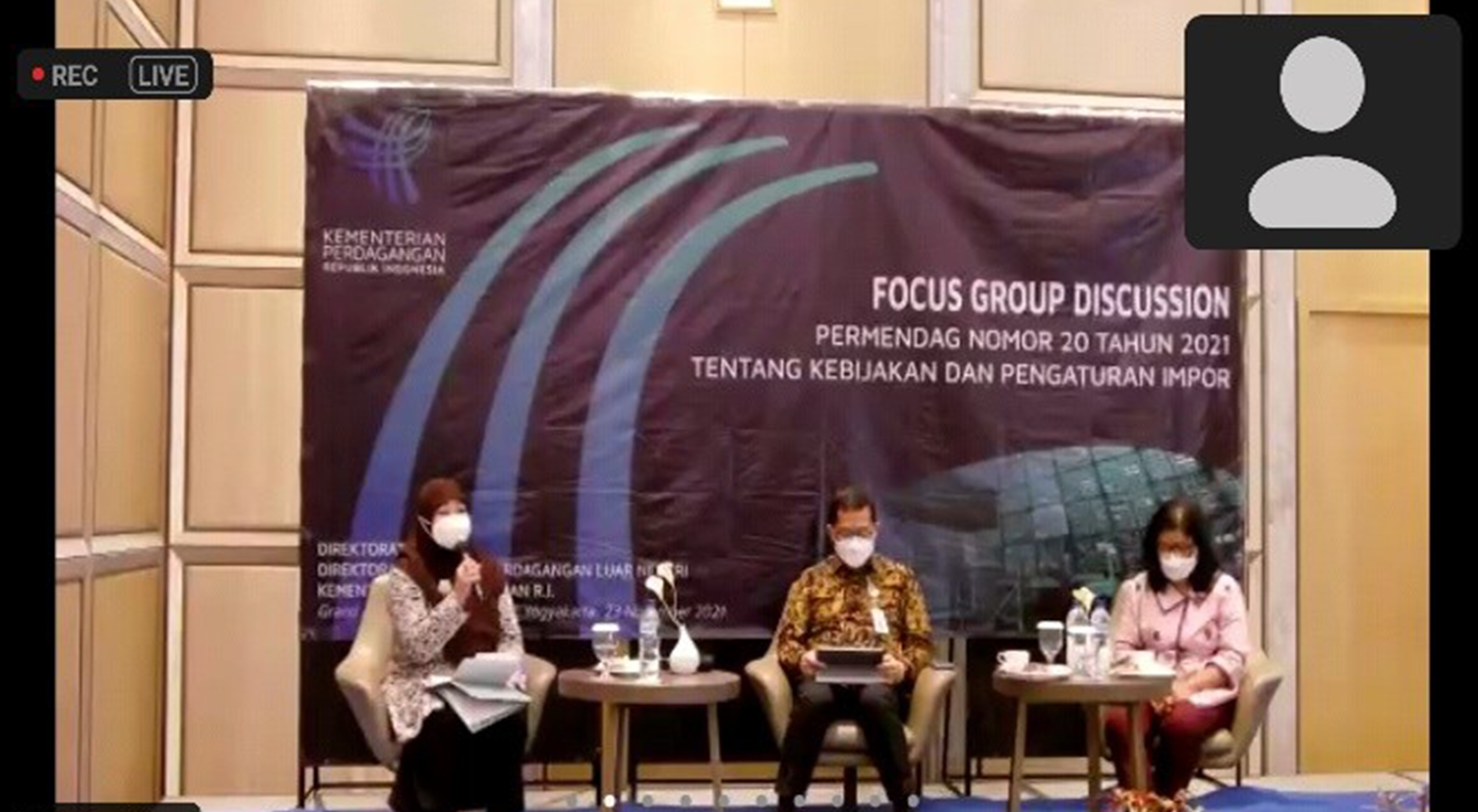 Sehubungan dengan telah diterbitkannya Peraturan Menteri Perdagangan No. 20 tahun 2021 tentang Kebijakan dan Pengaturan Impor, Direktorat Jenderal Perdagangan Luar Negeri Kementerian Perdagangan mengadakan Focus Group Discussion untuk memberikan informasi terkait pemberlakuan PermenDag No. 20 tahun 2021. Menteri Perdagangan – Muhammad Lutfi telah menerbitkan Peraturan Menteri Perdagangan ( Permendag) Nomor 20 Tahun 2021 tentang Kebijakan dan Pengaturan Impor. Aturan yang diteken pada 1 April 2021 ini pun resmi mencabut 39 aturan perdagangan yang pernah terbit sebelumnya. Peraturan Menteri ini mulai berlaku setelah 228 ( dua ratus dua puluh delapan ) hari terhitung sejak tanggal diundangkan. FGD dibuka oleh Plt. Direktur Jenderal Perdagangan Luar Negeri, terdapat 6 ( enam ) pembicara dalam Sosialisasi tersebut, yaitu : Sekretaris Direktorat Jenderal Perdagangan Luar Negeri menyampaikan materi tentang pokok-pokok perubahan kebijakan dan pengaturan impor pada Lampiran Permendag; Kepala Biro Hukum menyampaikan materi tentang pokok-pokok pengaturan pada batang tubuh Permendag Impor; Perwakilan Asisten Deputi Fasilitasi Ekspor dan Impor, Perwakilan Kemenko Perekonomian, menyampaikan materi tentang implementasi neraca komoditas; Kepala Pusat Data dan Sistem Informasi menyampaikan materi tentang pemrosesan perizinan pada Sistem INATRADE; Perwakilan Direktur Efisiensi Proses Bisnis LNSW menyampaikan materi tentang mekanisme Single Submision dalam pengajuan perizinan; dan Perwakilan Direktorat Teknis Kepabeanan DJBC menyampaikan materi tentang tata laksana kepabeanan ekspor. Sebagai nara sumber juga turut hadir Direktur Impor. Dalam FGD ini dijelaskan kewajiban importir yang harus dipenuhi yaitu memiliki NIB yang berlaku sebagai API-U atau API-P, memenuhi KSWP, memiliki Hak Akses dengan registrasi melalui SINSW, mengimpor barang dalam keadaan baru. Adapun importir wajib memiliki Perizinana Berusaha di Bidang Impor dari Menteri ( untuk kegiatan Impor atas barang tertentu ). Penerbitan dilakukan oleh Direktur Jenderal atas nama Menteri. Perizinan Berusaha di bidang impor meliputi ; Importir Terdaftar/Produsen dan/atau Persetujuan Impor Perizinan Berusaha di bidang Impor merupakan dokumen pelengkap pebean di kawasan pabean atau dokumen persyaratan Impor di post border. Dalam hal dokumen persyaratan Perizinan Berusaha di bidang impor atau pertimbangan teknis dari K/L terkait dan/atau dokumen legalitas pendukung lainnya telah tersedia secara elektronik pada kementerian/lembaga pemerintah non kementerian yang telah terintegrasi dengan SINSW, Importir tidak perlu menggugah dokumen persyaratan ke SINSW. Importir bertanggung jawab penuh terhadap kebenaran dan kesesuaian : dokumen persyaratan; dan data dan informasi terkait dokumen persyaratan yang tersedia secara elektronik, dengan memberikan persetujuan dalam bentuk pernyataan tanggung jawab atas kebenaran dokumen secara elektronik melalui SINSW pada saat melakukan pengajuan permohonan Perizinan Berusaha di bidang impor.