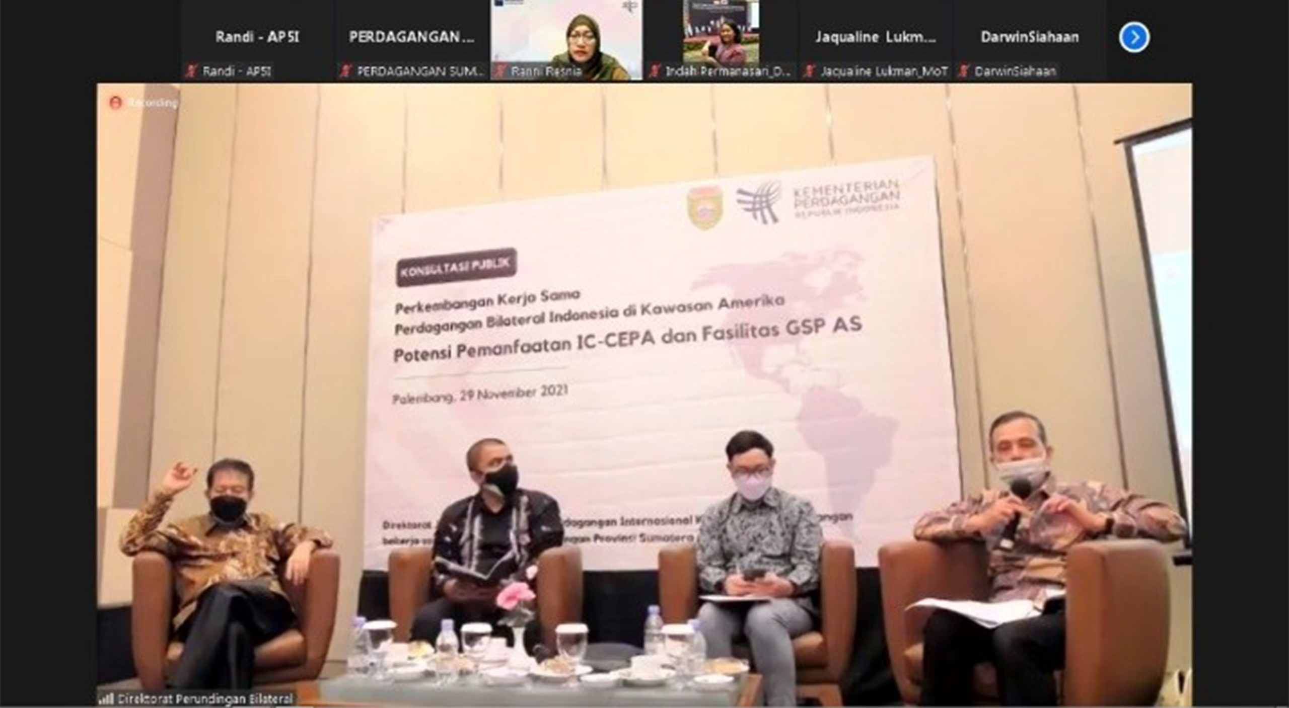 Konsultasi Publik Perkembangan Kerjasama Perdagangan Bilateral Indonesiadi kawasan Amerika ; Potensi Pemanfaatan IC-CEPA dan Fasilitas GSP AS – 29 November 2021