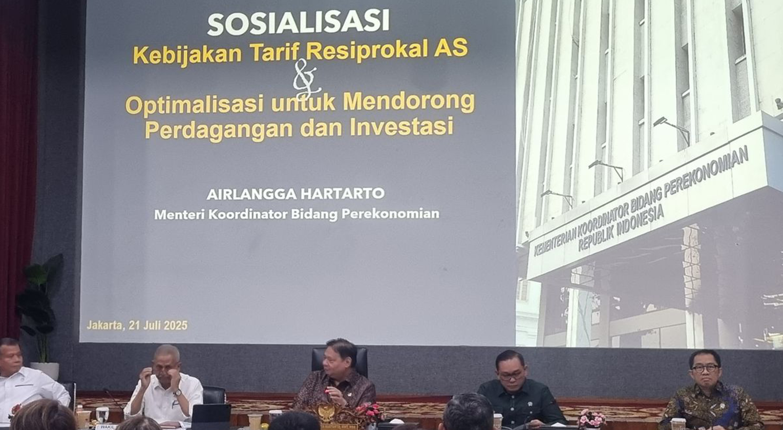 Sosialisasi Kebijakan Tarif Resiprokal AS Kepada Para Pelaku Usaha dan Asosiasi di Kantor Kemenko Perekonomian – 21 Juli 2025